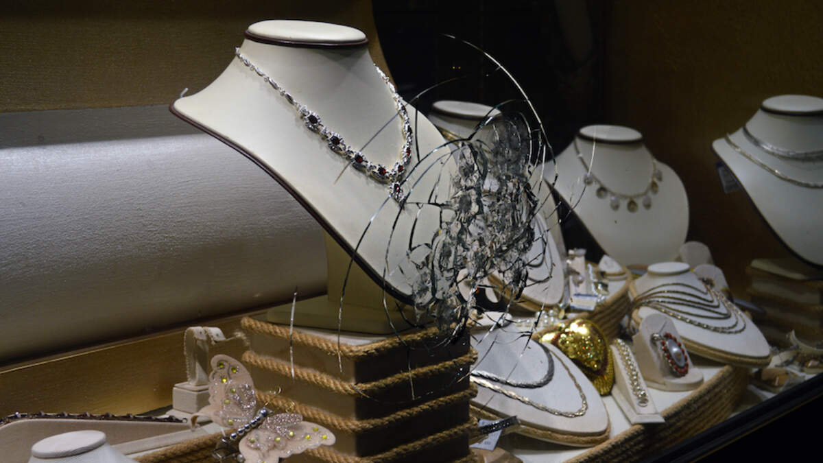 Surveillance video showed the employees at the Princess Bride Diamonds jewelry store in the Bella Terra shopping center quickly respond after one of the four hooded suspects used a hammer to smash a display glass case, NBC Los Angeles reports.